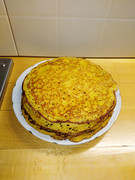 ![]() ![]() ![]() ![]() Тесто 500 гр мякоти тыквы натертой на терку 2 яйца 5 ст.л. муки соль черный молотый перец по вкусу чеснок по вкусу Для соуса 100 гр майонеза ,укроп и чеснок по вкусу Из теста испечь 5 коржей. У меня получилось муки нужно было 7 ст.л. думаю все зависит от самой тыквы, у меня была Лунга Пиена ди Наполи, какая по сочности у нее мякоть. |