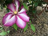 К обеду расцвел еще один клематис, приобретенный как "Clematis 'Warszawska Nike' и обрезанный на зиму как 3 группа