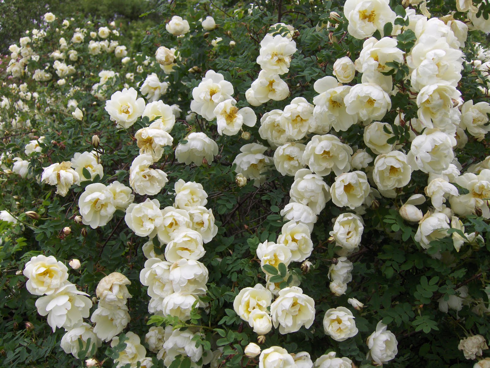 Несколько лет назад я видела несколько кустов очень похожей розы в городском парке, и в чьем-то палисаднике, но в каком городке - не могу вспомнить, кажется в Житомире. Куст фонтаном, до полутора метров высотой, цветки расположены не пучками, а "выныривают" из пазухи каждого листика на ветке. В цвету похожа на огромную спирею - ветки фонтаном, и выглядят белыми качалочками... насколько помню, как-то так... ---------- Post added at 17:04 ---------- Previous post was at 17:03 ---------- А цветочки наверное были немного мельче, чем у этой, на фотографии. |