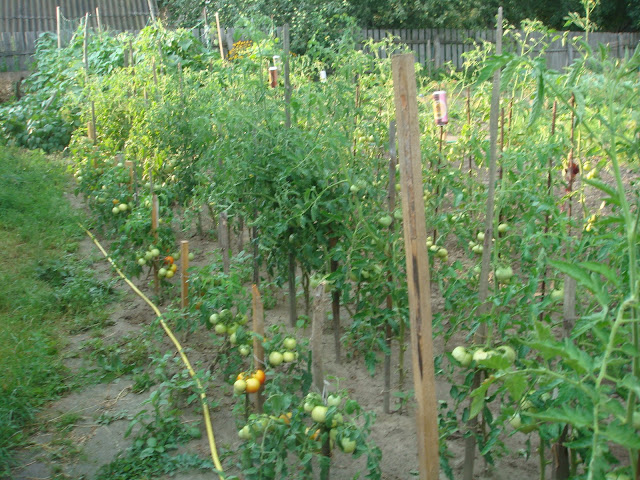 Дача у нас всего второй год, до этого там лет 8 ничего не обрабатывалось и в этом году еще тоже остались неосвоенные участки. Так что можно сказать , что это мой первый помидорный опыт. Без химии. Без полива (близко грунтовые воды). Рассада и своя, и покупная на базаре. В ОГ высаживала гораздо позже, чем все, опять же из-за того, что очень близко грунтовые воды. Помидорчики только-только начинают краснеть и я радуюсь этому как ребенок. Дача на границе Бориспольского и Барышевского районов.