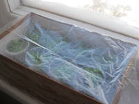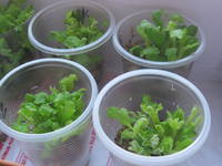 25 марта зачеренкованы хризантемы в мох сфагнум. Стояли на подоконнике в коробке из-под обуви, накрыты пленкой. Утром и вечером брызгала из пульверизатора. ![]() ![]() ![]() У черенков образовались корешки. 5 апреля посажены в 200-граммовые стаканчики. ![]() ![]() ![]() Те черенки, у которых корешки были хорошие, сегодня выглядят так ![]() А у тех, у которых корешки маленькие – вид такой ![]()