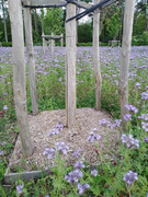 И часть выполненна из кусочков толстой сосновой коры. Выглядит неплохо. Набрать ее бесплатно не проблема. Только мне непонятно два момента. Чем ее обрабатывать от вредителей коры сосны, не перелезут ли они на садовые деревья? И она же поплывет при сильном дожде. Хотя смотрится неплохо если поломать и насыпать кусочками. |