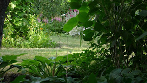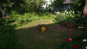 Это вид на середину сада. Вдали - площадка для посиделок у костра.