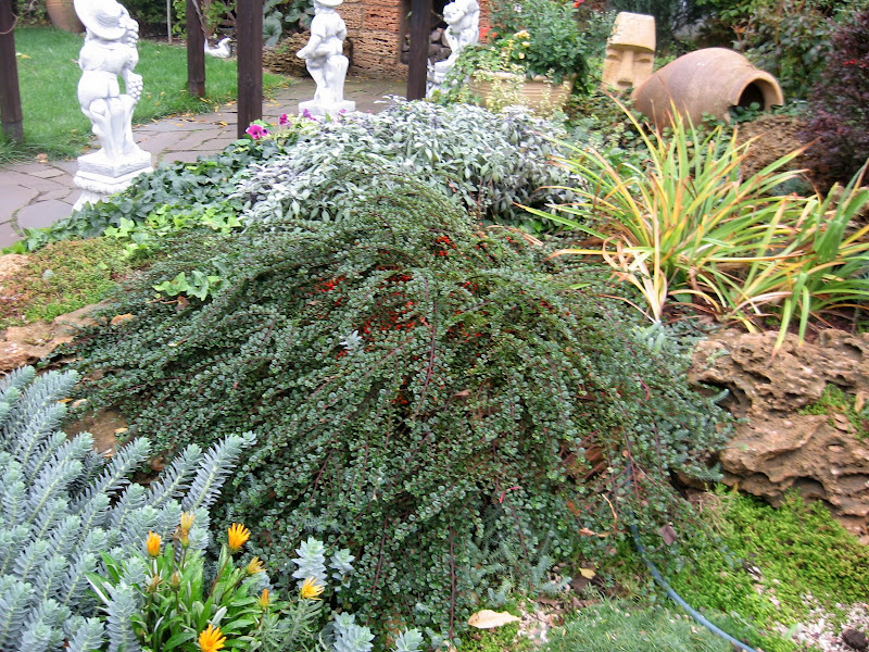 Народ, кто знает, темно-зеленый куст -- это кизильник? Какой именно? Спасибо. |