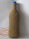 Девочки, на бутылку наносила клей ПВА, потом прокручивала с несильным нажимом бутылку на горке этого песка,сушила на радиаторе так же второй слой, потом снова сушка, и обмакивала в грунтовку (из распылителя нет смысла - стекает). В последнюю очередь нужно оклеить дно и крышку.