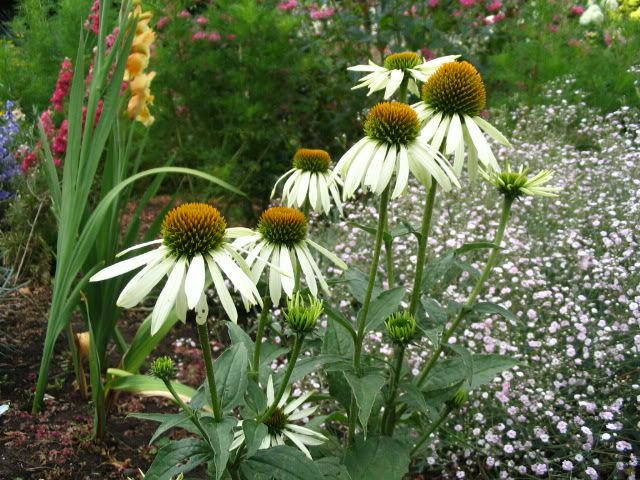 Есть наперстянки, кровохлебки и колокольчик "Лоддон Анна". Может, кто-то из них? И еще ж будут горянки!