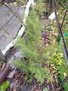 Давно хочу спросить у шановного панства, кого это мне деверь подсунул. Растет медленно, но возможно, из-за полутени. Разлапистое, аки дерево. Я б мо растюшке место получше поискала, кабы знала габитус и прочее.