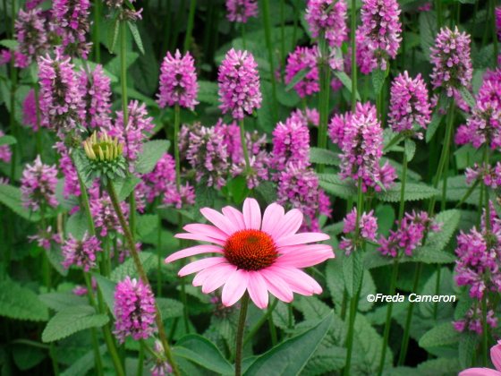 Есть наперстянки, кровохлебки и колокольчик "Лоддон Анна". Может, кто-то из них? И еще ж будут горянки!