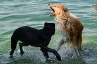 ![]() Зарик вообще-то парень добрый и компанейский, но уж больно "чижолый". Он в процессе игры забывается ("расколбас" с ним случается, как у избалованного ребенка, когда он перестает всех слышать). И летят эти расколбашенные почти 60 кг ![]() со скоростью хорошего ахалтекинца на утонченного и аристократичного Ланцелота весом почти в три раза меньше "для поиграть"" ![]() Мало не покажется. Поэтому Ланц, когда Зарик уж совсем зарывается, показывает ему зубы ![]() Но в основном играют так: Зарик сразу ложится на спину, чтобы никого не повредить, и лениво отбрыкивается своими "балеринскими" ногами. Ноги вот такие, прям Марис Лиепа ![]() ![]() У нас картинок много, я покажу. Тут мы красивые и спокойные )) ![]() ![]() Тут... не очень ![]() ![]()