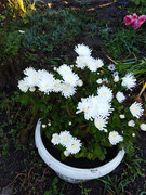 И ещё... Не помню уже кто, но демонстрировали наглядно зависимость величины шарика от времени посадки черенка - чем раньше, тем больше. Зацветают одновременно. Ну, и конечно нужно иметь разные по срокам цветения сорта. И из года в год сроки цветения не совпадают. Почему-то у меня два куста, купленных у бабулек ко дню учителя (цветы срезала, а корни посадила) ни разу ко дню учителя так и не зацвели. Есть одна хризантема, которая мне очень нравится. Я ее каждую осень (в октябре) покупаю на рынке, каждый раз меня убеждают, что зимует в грунте. Но даже при условии, что я ее сохраняю под розами, зацвести она все равно не успевает. Даже этой осенью бутоны так и не раскрылись, хотя позацветали самые поздние и редко цветущие сорта. Вот что они им делают?! Вряд ли кто-то будет играться с длиной дня для продажи на базаре.