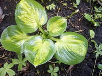 ![]() ![]() ![]() На заднем плане хоста 'Alex Summers'. Фото сделано уже после отделения нескольких розеток. Ей три года. Очень мне нравится хоста. Такая нарядная. ![]() ![]() ![]()