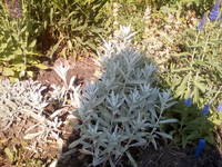 Лена, с фотографировала я свою "седую" веронику по- ближе. Справа полынь с рынка, слева вероника, большой кустик. Листья вроде у полыни и вероники похожи, но вероника не цвела и не собирается. Может она и не будет цвести в этом году? Посмотрим.