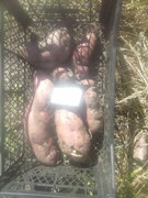Итог - с 8ми выкопаных кустов максимум-4.5кг с куста, самый большой клубень 1.57кг. Один саженец оказался Перпл - фиолетовые клубни- всего 3шт грамм по 250. Один куст остался доживать-выкопаю позже.