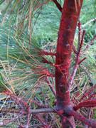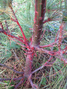 На фото видно красный цвет - мазала летом препаратом Максим неразведенным, так как на стволе было течение смолы и растрескивание, возможно, ржавчина. В августе обработала Фальконом. Хвоя сыпется, сосна лысеет, никакие стимуляторы не действуют. Почва очень плотная, глинистая, сегодня подготовила новую яму с более легким грунтом. Завтра планируется «лупайте цю скалу»...