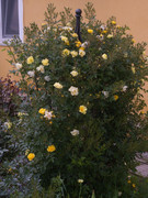 Несильно, легкий цитрусовый аромат, но только у свежераспустившихся, те, что желтенькие, пчелкам они очень нравятся. По полудню - это , по сути, белая роза. Когда-то я очень искала Snow Goose Остина, похоже, я нашла его в этой розе) с некоторыми вариациями