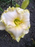 Ellen Strickland, купленный в прошлом году у nis. Неожиданно решил зацвести, кто-то весной погрыз розетку внутри, пробный цветонос получился короткий, но сам цветок шикарный, крупный. Фото не передаёт волшебство этих кудрей и богатый оттенок