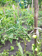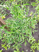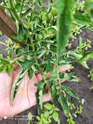 Доброго дня. Порадьте, будь ласка, Чим допомогти помідорам. Після злив точно зрозуміло, що то не від нестачі вологи. Вони досить давно в такому стані - вже мабуть місяць. Нічим не удобрювалися крім куриного помету при посадці у яму. Обробляла ридомілом десь 3 тижні назад.