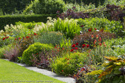 Есть эуфорбия с т-красным листом. Идеально впишется в такой цветник.