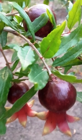 У цьому році отримав неочікуваний сюрприз від одного із сіянців гранатника із Ірану. На першому фото плід Кримського полосатого(такі ж і на Гюлоша рожевому) а на другому фото плоди сіянця. На гарний смак зовсім не очікую,але колір плодів заінтригував.Забарвлення навіть більш інтенсивне,ніж у карлика 8-ма куля.