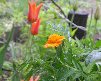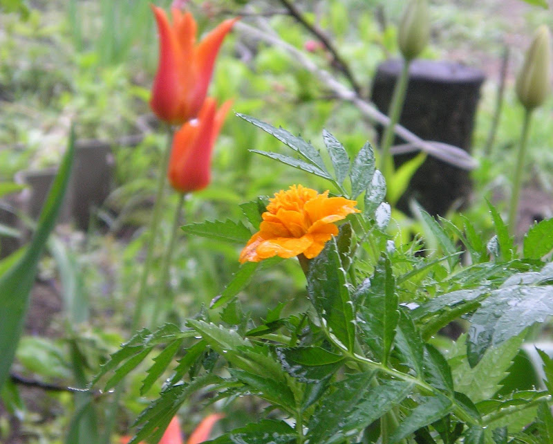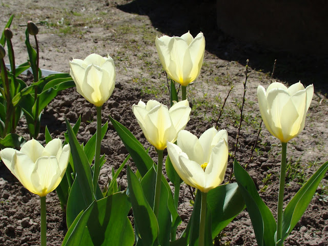 . Большинство крупных голландских луковиц распались на детки и выдали по одному листочку. Еще каждое утро наблюдала в середке тюльпанов каких-то мохнатых жуков, купающихся в золотистой пыльце . Подумала, что эта та самая оленка, о которой Иннуся рассказывала, собирала и топила в баночке с водой. В обед процедуру приходилось повторять...Пока в фаворитах Большой театр и Импрешинс (розовый и лососевый), совсем не понравился махровый ранний Монселла, подарю кому-нить осенью.