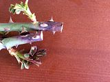 По поводу светлой каймы, есть вероятность, что сердцевина таких стеблей не совсем живая-свежая. Листья эти вверху или по всему побегу?