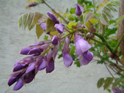 У далекому 2010 році на новорічній зустрічі форумчан нам дісталася насінина гліцинії. Навіть не пам'ятаю - хто подарував. Проросла у стаканчику, висадили, обрізаю, поливаю. І комусь вкоренілі пагони також дарував. Казали, що через 7 років зацвіте. Думав - обман якийсь, хотів викорчовувати. А тут - радість, нарешті пробилася єдина китиця квіток! Фото трохи не чітке, вітер