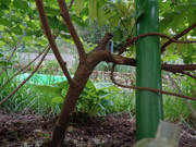 Вот по поводу возраста глициний для цветения. В Германии продают саженцы привитые,на кого,без понятия. Так вот такие саженцы зацветают на 2-3 год от посадки. Вот,например,моя,видно,что три палочки,молоденькая. Внизу есть место прививки. Если посмотреть любой немецкий питомник,то будет обязательно указано Veredelung (привитый)