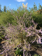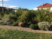 Рядом растёт мискантус Каскад, тоже очень красивый, но не выделяется, будет ярче смотреться, когда изгородь станет красной.