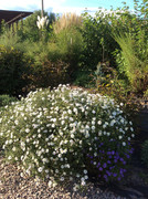 Впервые зацвел мискантус Балерина: бесподобные яркие соломенно-белые метёлки. Постаралась сфотографировать с разных ракурсов, чтобы передать, насколько яркое пятно получается. Но все же на фото немного размыто, неконтрастно...