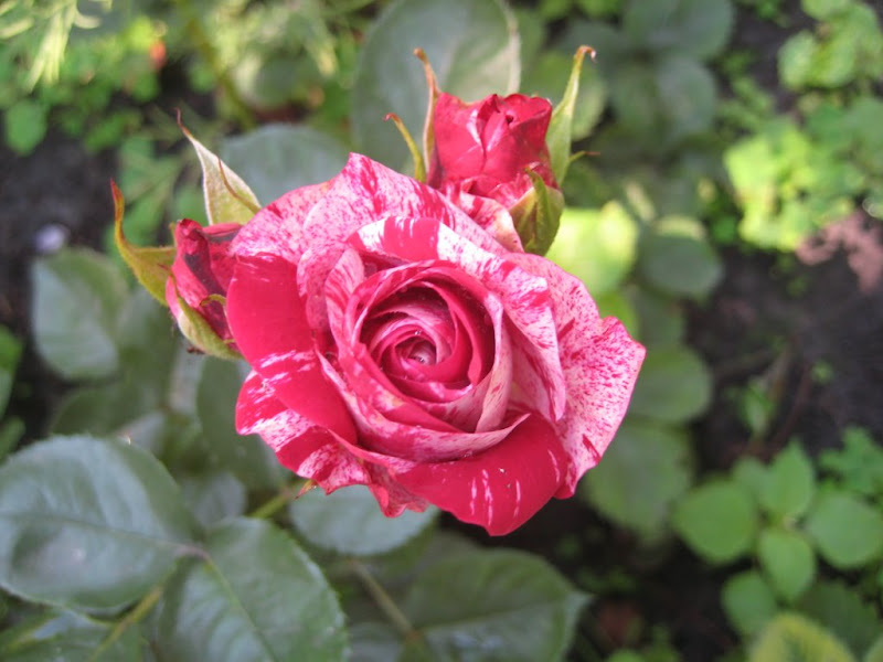 Приобрела месяц назад саженец розы с цветами и ОКС на местном рынке. Сорт Arrow Folies. Селекция Jakcson&Perkins. Флористический полосатик.Но было столько бутонов